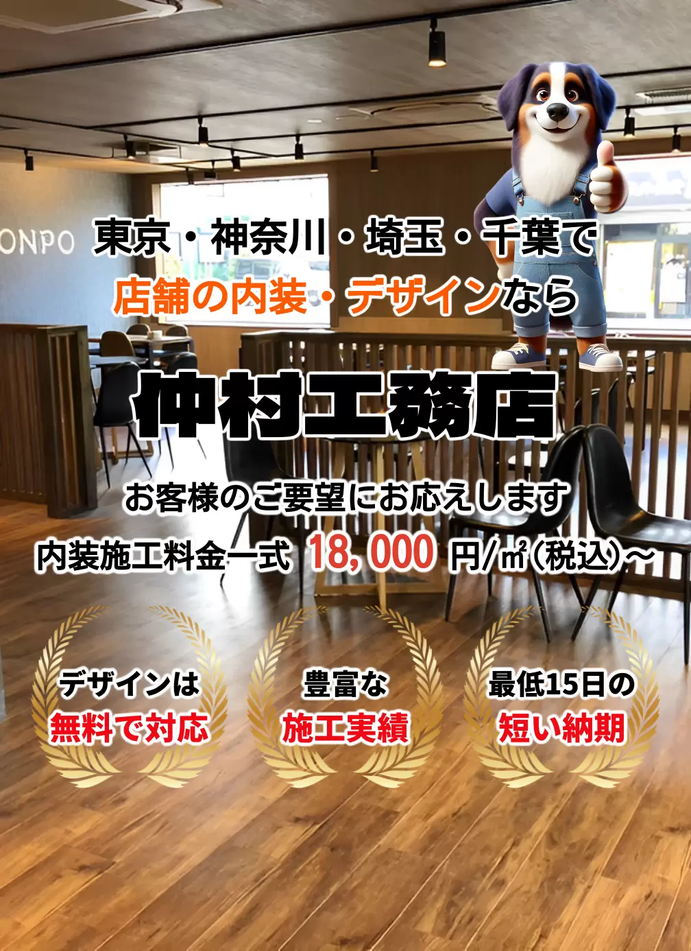 デザイン費は無料、さらに床の貼り替え施工費は1㎡あたり1万円というリーズナブルな価格でご案内しております。ぜひお気軽にお見積りをご依頼ください。